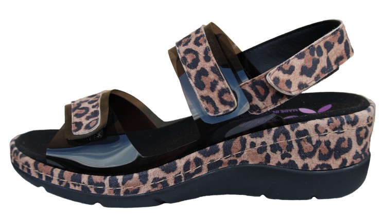 BEAUTIFUL SLINBACK SANDAL ON OUR 2 INCH WEDGE.LANA HAS A CUSHIONED REMOVABLE FOOT BED WITH MODERATE ARCH AND METATARSAL SUPPORT. THE UPPER IS FULLY ADJUSTABLE WITH VELCRO TO ACCOMMODATE DIFFERENT WIDTH ( N,M,W). LAINE IS MADE IN A SEE THROUGH MATERIAL WITH LEOPARD PRINT OVERLAY. A MUST HAVE THIS SEASON.
