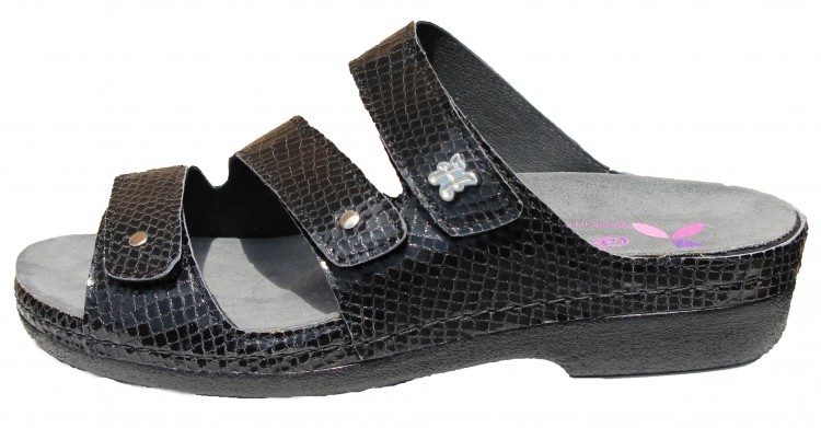 TANIA HAS OUR RENOWNED REMOVABLE FOOT BED WITH ARCH AND METATARSAL SUPPORT. THIS FOOT BED ALLOWS YOU TO WALK OR STAND ALL DAY ON YOUR FEET. IF NEEDED OUR FOOT BED CAN BE REPLACED WITH YOUR PERSONAL ORTHOTIC. TANIA IS ON SLIGHT 1 1/2 INCH WEDGE THAT HELPS TO REDUCE BACK STRAIN. THE TOP STRAPS ADJUST WITH VELCRO'S TO ACCOMMODATE DIFFERENT WIDTH (N,M,W).