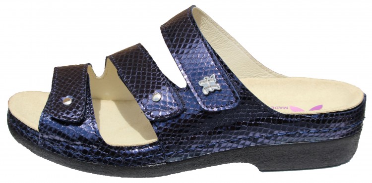 TANIA HAS OUR RENOWNED REMOVABLE FOOT BED WITH ARCH AND METATARSAL SUPPORT. THIS FOOT BED ALLOWS YOU TO WALK OR STAND ALL DAY ON YOUR FEET. IF NEEDED OUR FOOT BED CAN BE REPLACED WITH YOUR PERSONAL ORTHOTIC. TANIA IS ON SLIGHT 1 1/2 INCH WEDGE THAT HELPS TO REDUCE BACK STRAIN. THE TOP STRAPS ADJUST WITH VELCRO'S TO ACCOMMODATE DIFFERENT WIDTH (N,M,W).