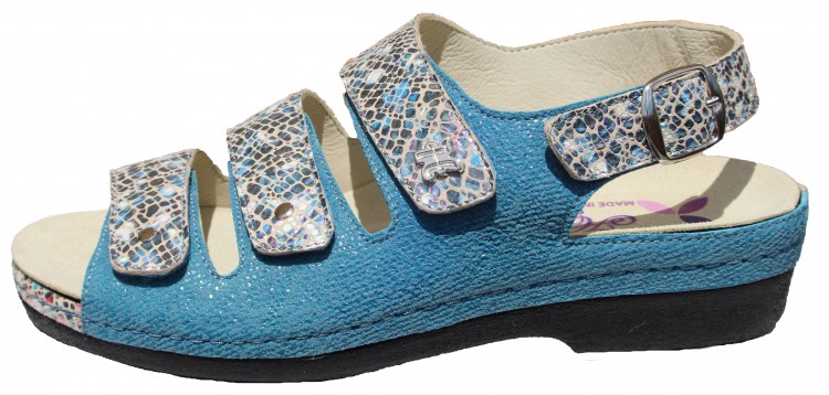 ALL NEW LEATHERS IN OUR MOST POPULAR CASUAL SANDAL ! YOU CAN DRESS THIS SANDAL UP OR DOWN. THANDIE FEELS VERY SECURE ON YOUR FOOT. THE SLIGHT 1 1/2 INCH WEDGE HELPS TO REDUCE BACK STRAIN THANDIE HAS OUR RENOWNED REMOVABLE FOOT BED WITH ARCH AND METATARSAL SUPPORT. THIS FOOT BED ALLOWS YOU TO WALK OR STAND ALL DAY ON YOUR FEET. IF NEEDED OUR FOOT BED CAN BE REPLACED WITH YOUR PERSONAL ORTHOTIC. THE VELCRO STRAPS ADJUST TO ACCOMMODATE DIFFERENT WIDTH (S,N,M,W). THIS SANDAL GIVES YOU AN ALL AROUND SECURE FEELING WHILE WEARING